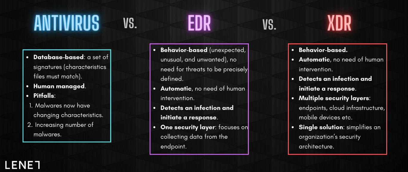 Antivirus Vs Edr 2024. EDR Solutions: Pros and Cons What is Next-Gen Antivirus? What Are the Differences Between EDR and Antivirus? While both have their place, you'll often have to choose one or the other, as they tend to compete for resources. But traditional antivirus programs (AKA, legacy antivirus or legacy AV) are a basic form of cybersecurity. For decades, organizations and businesses have invested in Antivirus suites in the hope of solving the challenges of enterprise security. Antivirus Vs Edr 2024.
